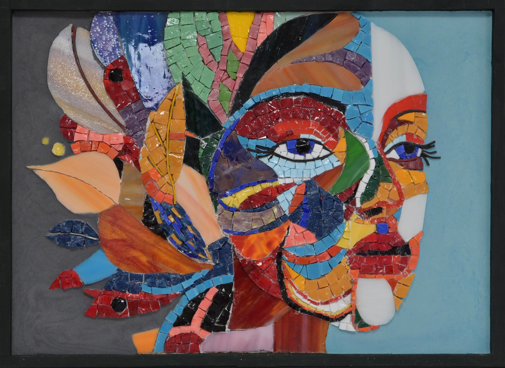 Mosaïque contemporaine Mélange d'émaux vénitien et de verre Tyffany 25 cm X 45 cm